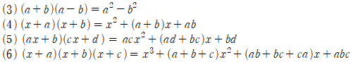 다항식을 일일이 전개하여 곱하는 것은 너무 시간과 에너지가 많이 드는 일이므로 자주 사용되는 다항식의 곱셈과정들의 전개 과정을 생략해 빠르게 연산할 수 있도록 정리해 둔 것이 곱셈 공식입니다.
