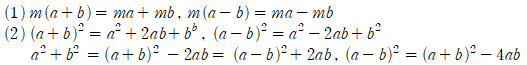 A, B, C를 다항식이라고 할 때 다음 법칙이 성립한다. 여기서 "A, B, C를 각각 다항식이라 할 때"라는 조건을 한번 살펴보면 앞으로 배울 수학에서는 복잡한 수식을 하나의 문자로 축약함으로써 좀 더 쉽게 표현해서 설명할 수 있고 후에 다항식을 한 문자로 치환하는 방법을 통해 이러한 표현 방법이 실제 계산에서도 유용하게 사용된다는 것을 알 수 있게 됩니다.